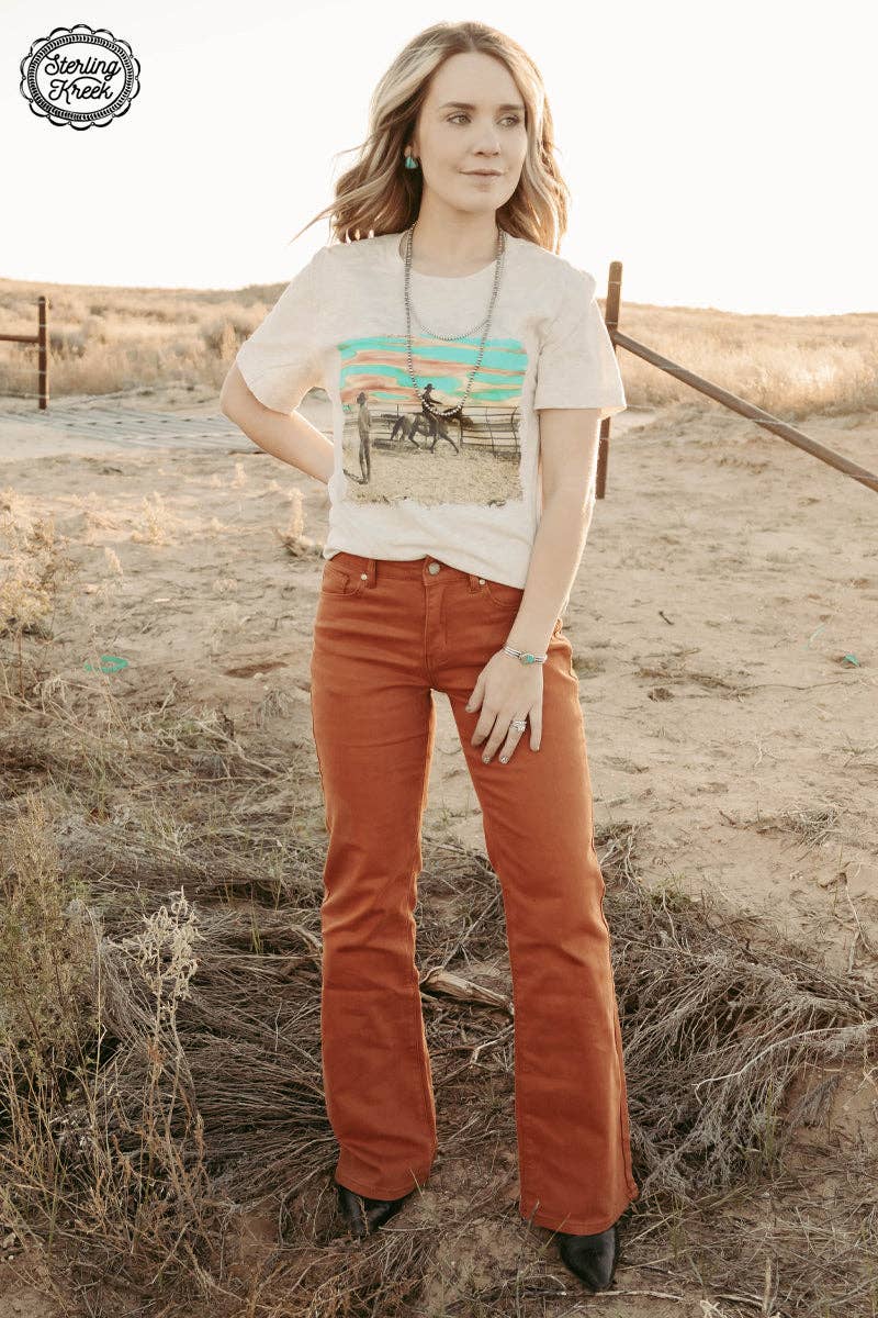 Be bold and show off your style with these rust-colored denim pants from Walking West! Whether you're going for a casual, everyday look or dressing up for a special occasion, these pants always have you covered. So throw on some fun accessories and strut your stuff!
